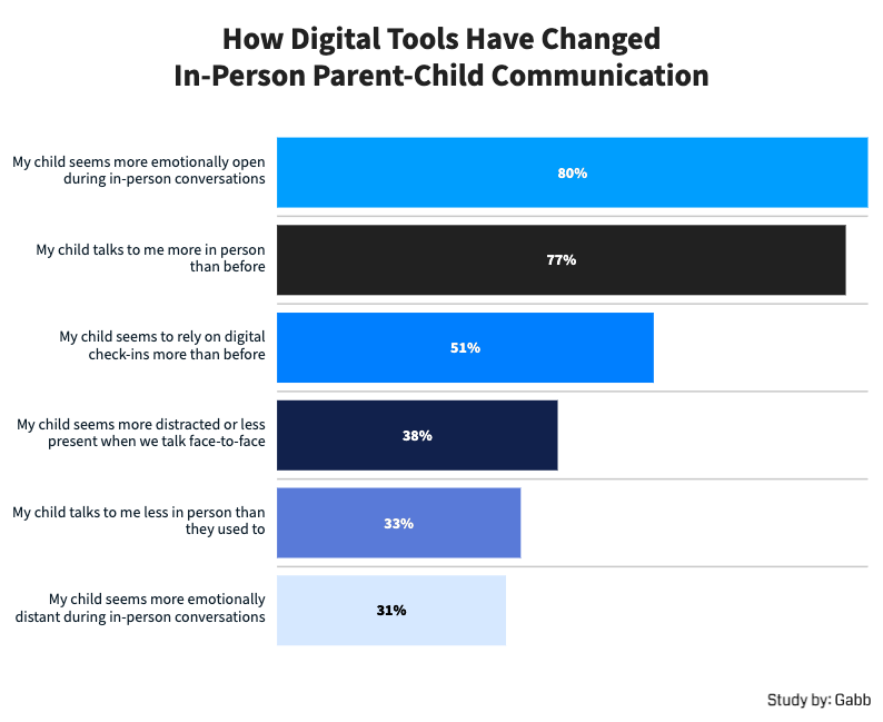 - 51% of parents say their child now relies more on digital check-ins, even when they’re together in person.